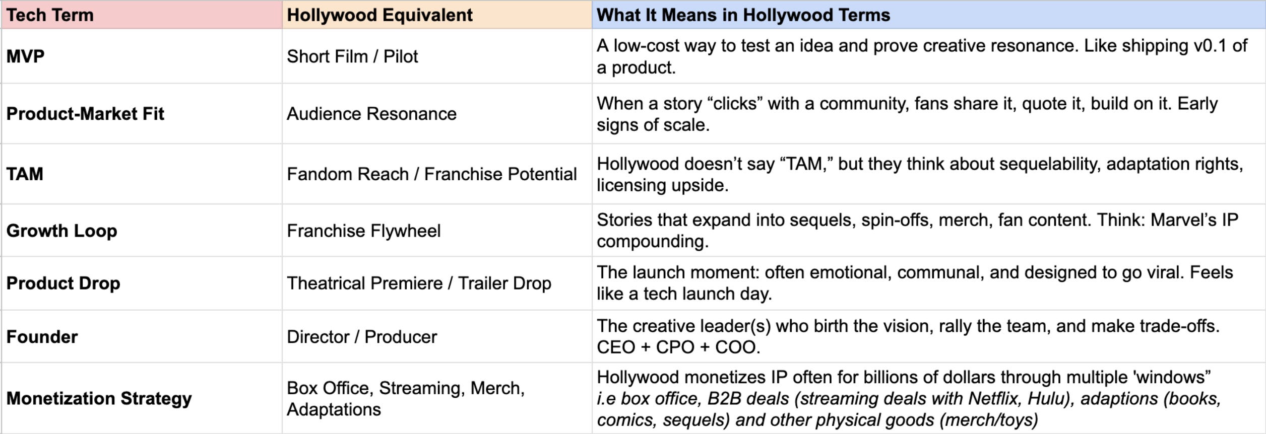 Here’s Hollywood terminology translated into the language of tech ⤵️